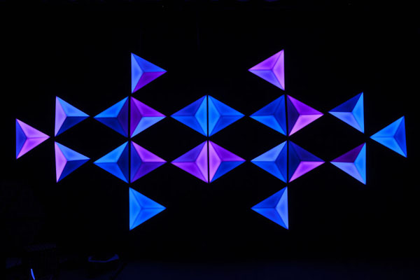 LED naked eye 3D triangular light, the plane presents three-dimensional, science fiction, fashion, color heart changes.